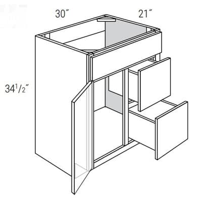 Trenton Recessed Navy - 30"W X 21"D X 34.5"H - Bathroom Vanity with Single Door and Double Drawers