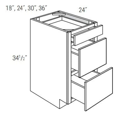 Yarmouth Raised Charcoal - 18"W X 24"D X 34.5"H - Drawer Base Cabinets With Three Drawers
